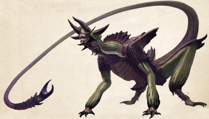 The horror before you seems like an eyeless insect, yet its long fleshy tail tells you otherwise. Strange coloration doesn’t help and with a hiss, it whips its tail at you.